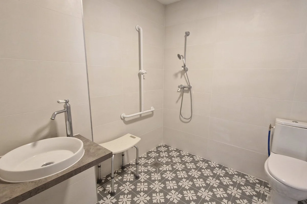 Pensées pour que chacun se sente pleinement chez soi, nos 2 Bienveillantes allient confort, élégance et accessibilité. Aux normes chambre PMR, elles bénéficient d’un aménagement entièrement adapté aux personnes à mobilité réduite, avec une circulation fluide, une salle de bain équipée d’une douche à l’italienne, de barres de maintien et d’un siège de douche.